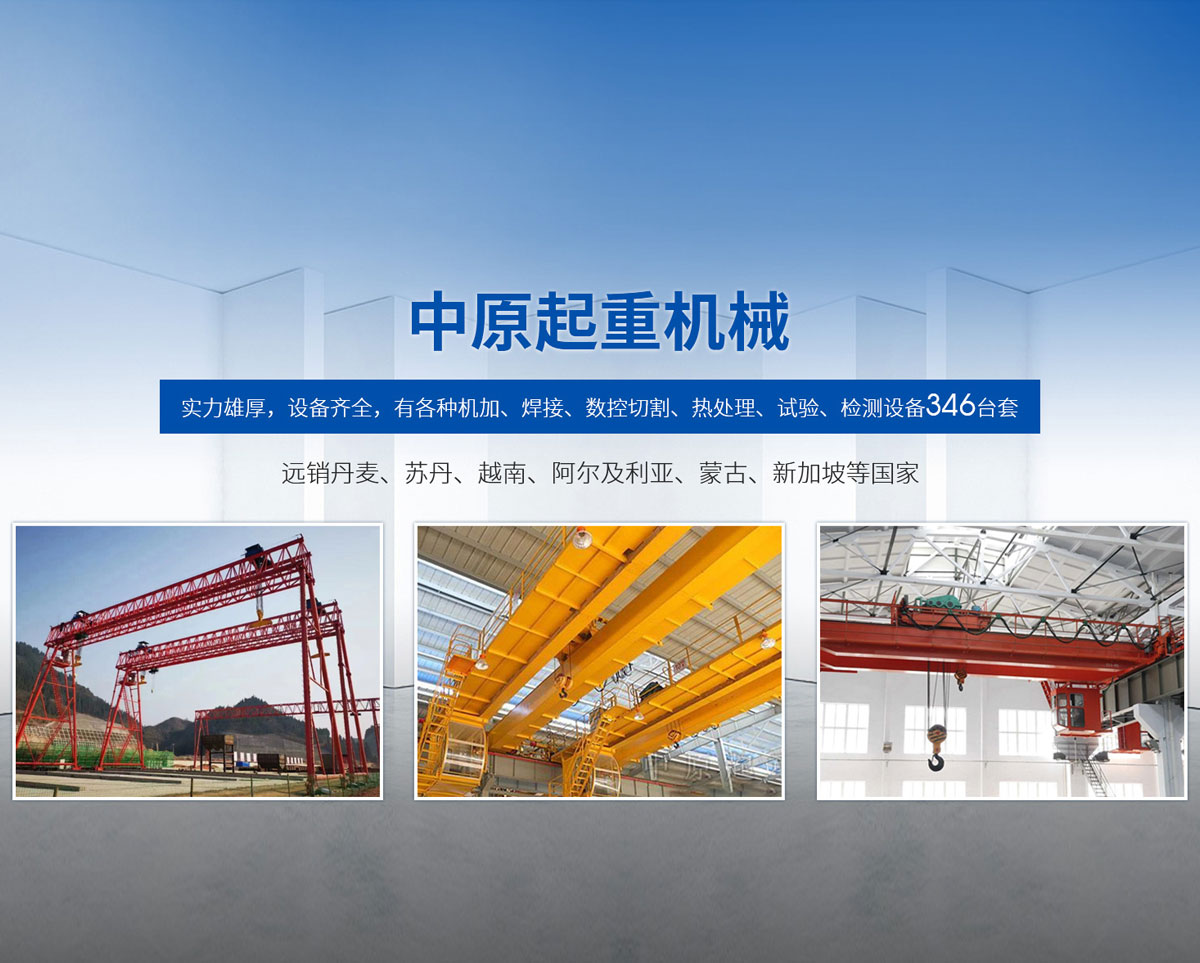 新鄉(xiāng)市中原起重機(jī)械有限公司成立于2000年,地處中原,輻射全國28個(gè)省市自治區(qū),設(shè)外埠經(jīng)銷處、辦事處268個(gè)。產(chǎn)品行銷工礦、建材、化工、冶金、電力、交通、鐵路、油田、港口等各個(gè)行業(yè)。遠(yuǎn)銷丹麥、蘇丹、越南、阿爾及利亞、蒙古、新加坡等國家。  公司實(shí)力雄厚,設(shè)備齊全,有各種機(jī)加、焊接、數(shù)控切割、熱處理、試驗(yàn)、檢測(cè)設(shè)備7臺(tái);有機(jī)加工、熱處理、單、雙梁橋門機(jī)生產(chǎn)、檢測(cè)、安裝等9個(gè)車間,研究中心、運(yùn)輸公司、安裝維修服務(wù)公司等機(jī)構(gòu),?  主要產(chǎn)品有:LD型1~20噸電動(dòng)單梁起重機(jī)系列產(chǎn)品;5~600噸通用橋式、門式、冶金、上旋轉(zhuǎn)下旋轉(zhuǎn)電磁吊、絕緣、抓斗、防爆起重機(jī)系列產(chǎn)品;LH3~100噸葫蘆雙梁系列產(chǎn)品;MH5~32噸葫蘆門式系列產(chǎn)品;0.5~40噸CD1、MD1鋼絲繩電葫蘆系列產(chǎn)品;HS1型0.5~20噸手動(dòng)葫蘆系列產(chǎn)品;0.5~10噸環(huán)鏈電動(dòng)葫蘆系列;0.5~40噸彎道電動(dòng)葫蘆系列產(chǎn)品;裝卸橋、造船門機(jī)、架橋機(jī)、鑄造吊和水電大噸位起重機(jī)系列產(chǎn)品。  公司建立了強(qiáng)有力的質(zhì)量保證體系和生產(chǎn)過程的質(zhì)量控制系統(tǒng),嚴(yán)格執(zhí)行國家設(shè)計(jì)、生產(chǎn)標(biāo)準(zhǔn),有嚴(yán)格的生產(chǎn)工藝過程和標(biāo)準(zhǔn),嚴(yán)格的檢驗(yàn)、檢測(cè)標(biāo)準(zhǔn)和手段。